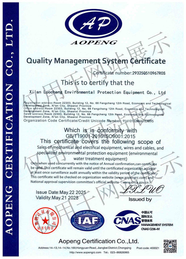 環(huán)境管理體系認 證證書