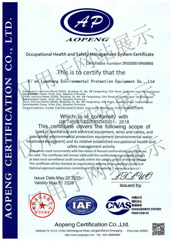 職業(yè)健康安 全管理體系認(rèn) 證證書(shū)